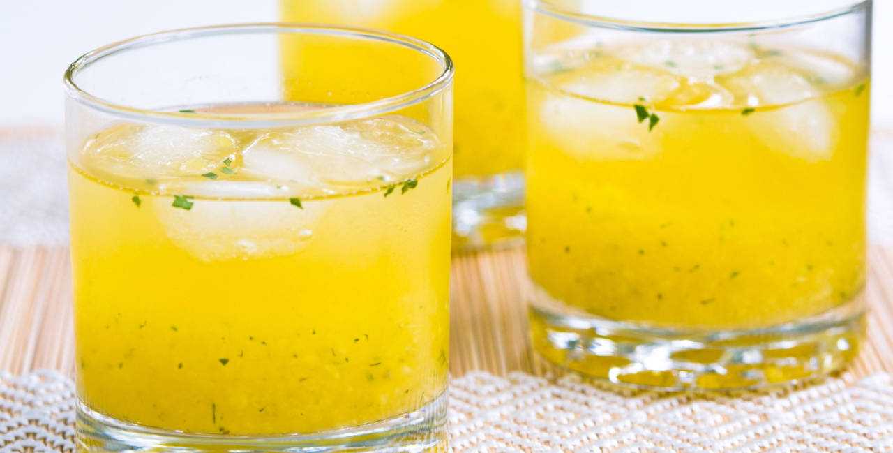 Золотая туфелька готова. Наслаждаться освежающим цитрусовым вкусом напитка рекомендуется сразу же после приготовления.