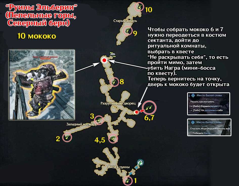 Для сбора мококо № 6, 7 в «Руинах Эльберии» нужно открыть дверь в секретную область.