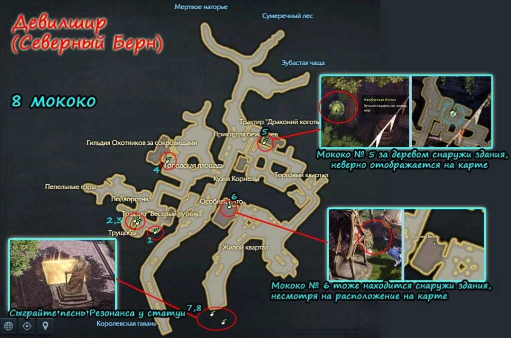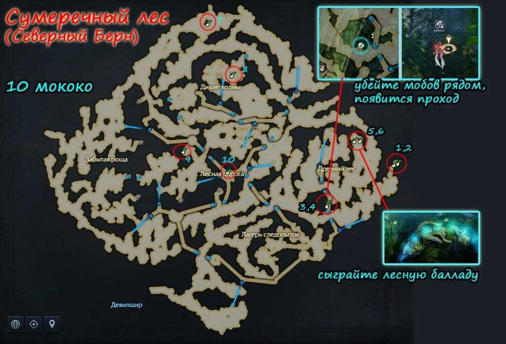 Для сбора всех мококо локации вам потребуется Песнь Лазениса, которую дают за заполнение70% Атласа и пройденные сюжетные задания региона.