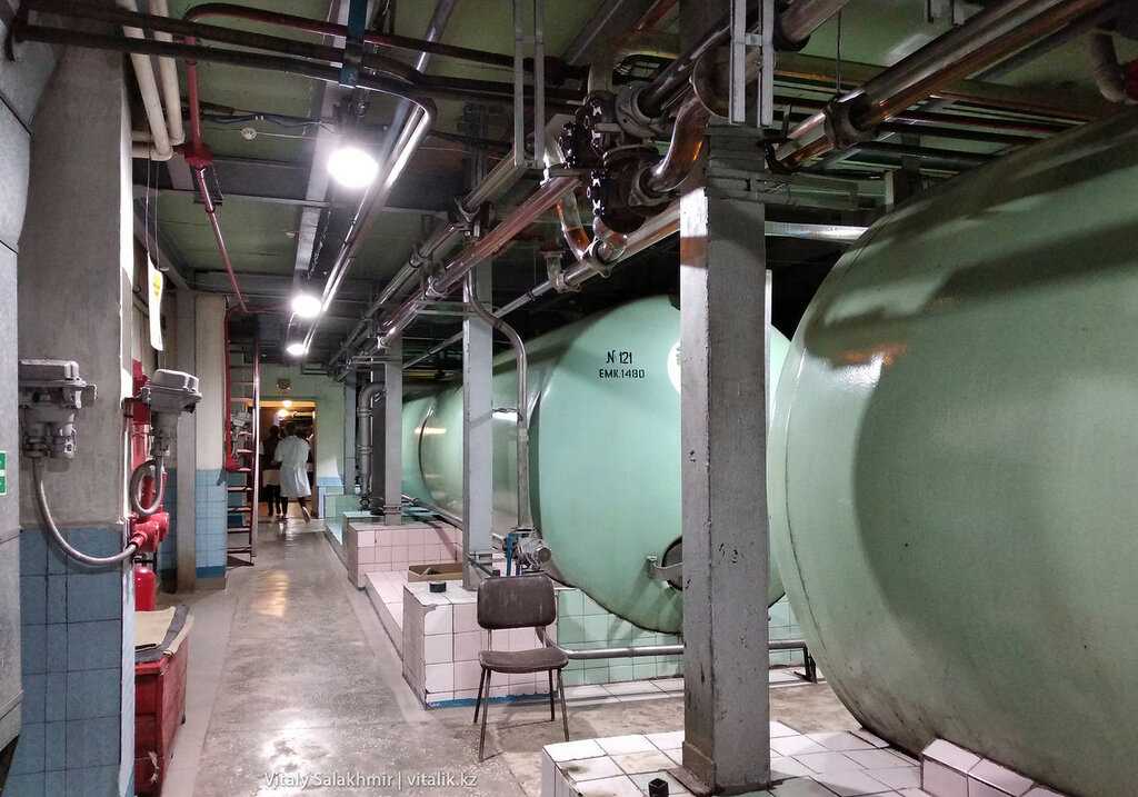 Кажется, по трубам текут декалитры коньяка в минуту. Скорее всего, это ординарный коньяк из металлических бочек. Объёмы немеренные, будто бы самый производимый продукт — мне так показалось. Пойдём, посмотрим как коньяк попадает в бутылки.