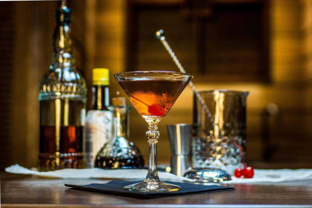 Напиток подают в бокалах-мартинках (для коктейлей). Микс Манхэттен категорически не готовится в шейкере.
