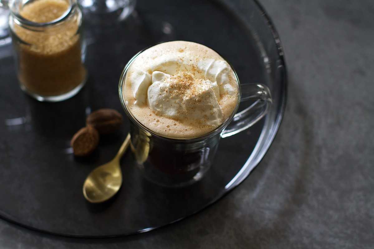 Раздавите мускатный орех и украсьте сверху. Подавайте немедленно.
