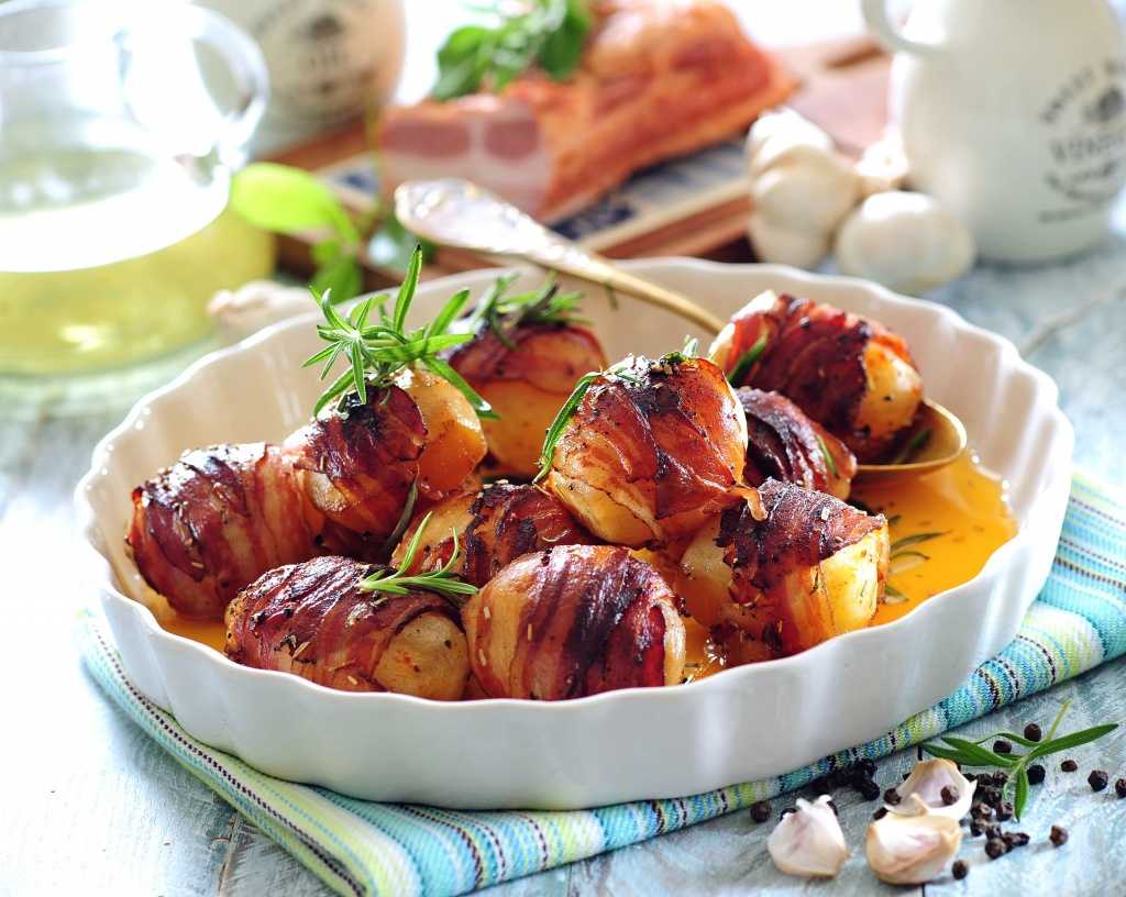 Бэби-картофель, запеченный в беконе