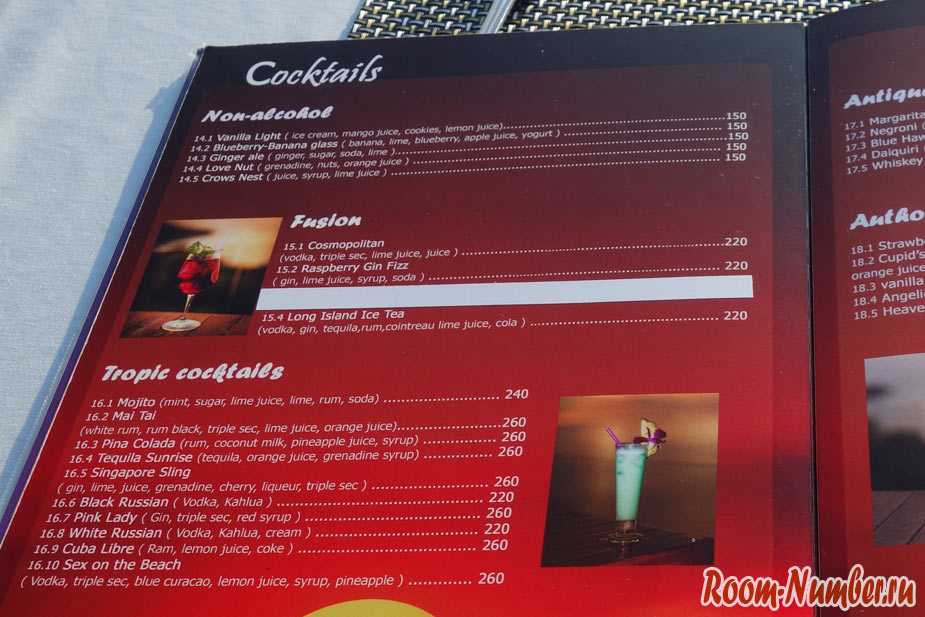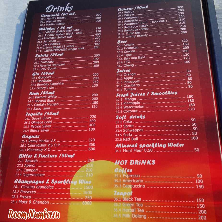 - Цена на алкогольные коктейли: 250-300 бат (7-10$)