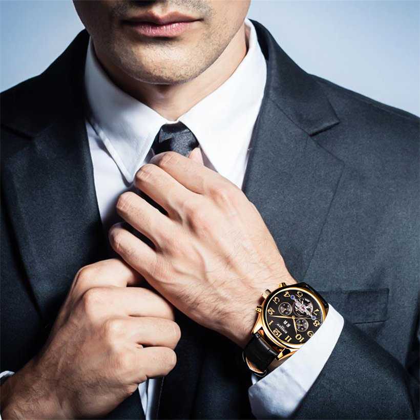 Аксессуаров не должно быть много. Обычно это галстук, платок в кармане и часы. Последние должны быть на кожаном ремешке или с браслетом из металла. Ремень подбирают классической модели с пряжкой нейтрального цвета.