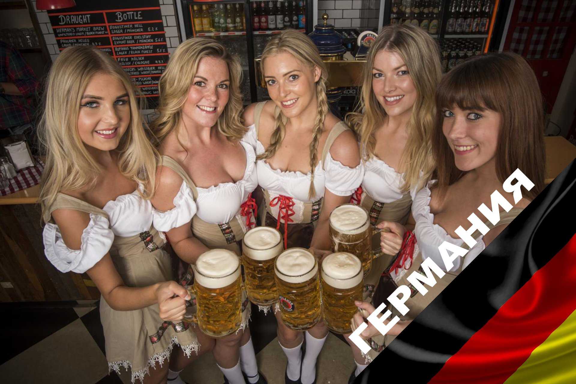Традиции: Пиво — важнейшая часть немецкой национальной культуры, апофеозом которой является, конечно же, Октоберфест, куда приезжают люди со всего мира, чтобы напиться вкусного пива и вдоволь насмотреться на грудастых баварок. Но самой известной германской пивной традицией является «закон о чистоте пива», который действовал более 500 лет. Он назывался «Райнхайтсгебот» (Reinheitsgebot) и регулировал состав пива, который должен был включать лишь три ингредиента: воду, ячменный солод и хмель. До сих пор многие считают, что только такое пиво и может называться пивом. Заказать пиво в Германии очень просто! Просто поймай своим страстным взглядом глаза официантки, и она сразу тебя поймет. И это вовсе не любовь с первого взгляда, это любовь к пиву. Не забудь поднять вверх нужное количество пальцев, чтобы она поняла сколько пива тебе принести.