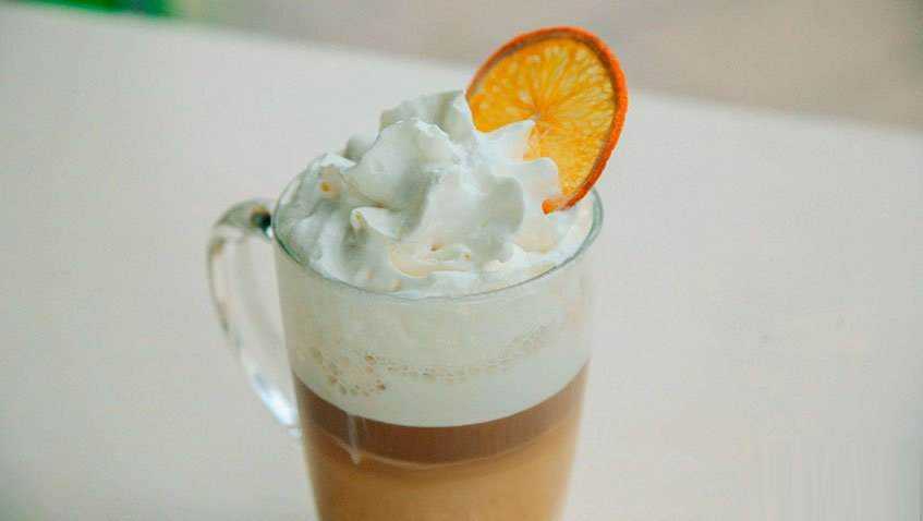 Кофейный напиток с апельсиновыми дольками, соком или цедрой может готовиться и другим способом. К примеру, сливки не смешивают с другими ингредиентами, а добавляют их в конце, формируя сверху напитка красивую воздушную шапочку.