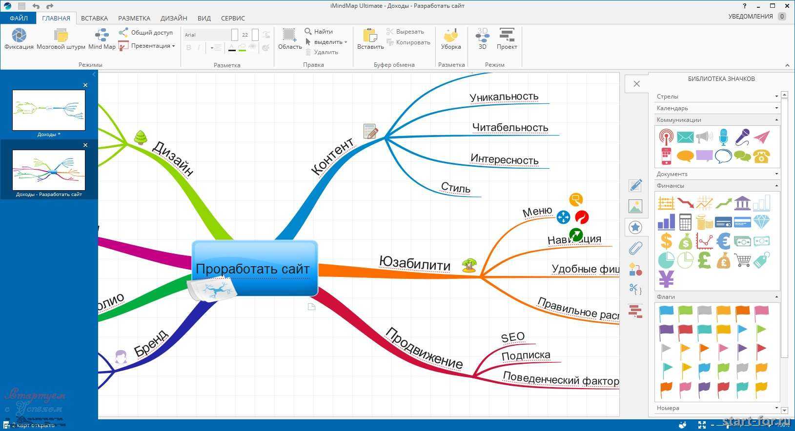 iMindMap — именно эту программу я использовал раньше, очень удобна в обращении, получаются красивые и эффектные карты. C ней я хорошо знаком, в дальнейшем расскажу поподробнее.