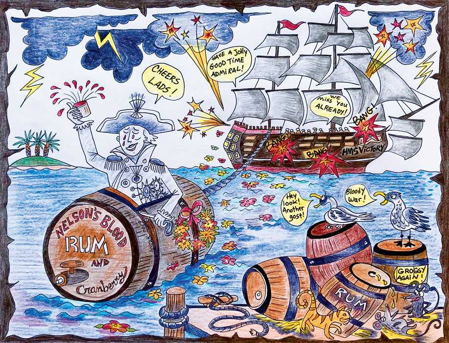 Следующая знаменательная история, восходящая к разряду баек, дала карибскому напитку еще одно, достаточно метафорическое, название. Нам уже известно, что на каждом судне хранились здоровенные бочки, наполненная ромом, но что если приготовить с таким алкоголем своеобразную настойку из морского волка? А ведь именно так поступили сослуживцы адмирала Горацио Нельсона, погибшего во время знаменитого Трафальгарского сражения.