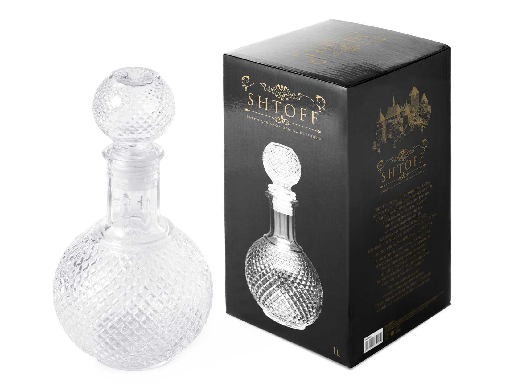 Еще одна модель китайского бренда Zibo Shelley, также подходит для алкогольной и безалкогольной продукции. За счет своего вида изделие станет эффектным дополнение любого стола. Производится из стекла высокого качества, что подтверждается наличием хрустального блеска, также подходит для использования в посудомоечной машине. Для большего эффекта производители сделали крышку в форме шара, которая плотно прилегает к стенкам сохраняя качество содержимого долгое время. Изделие продается в презентабельной упаковке и прекрасно подойдет в качестве подарка.