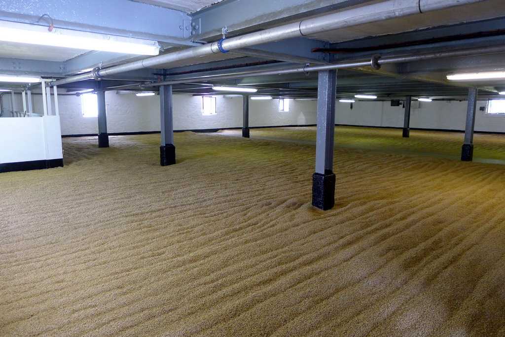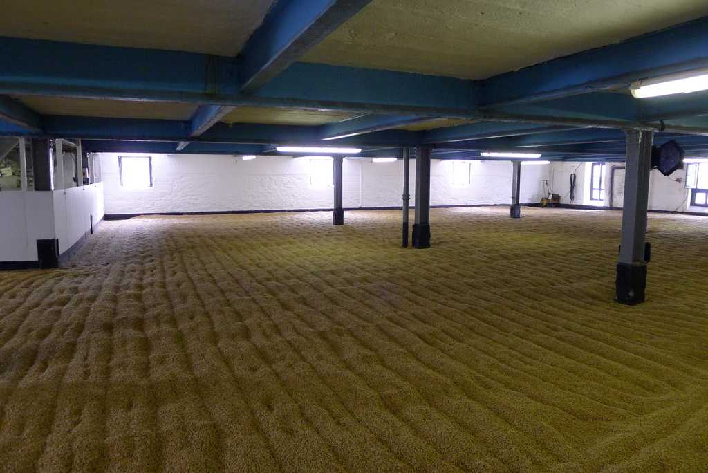 Экскурсия начинается логично — с собственной напольной солодовни. Она обеспечивает потребности винокурни на 30%, остальное покупается на Port Ellen.
