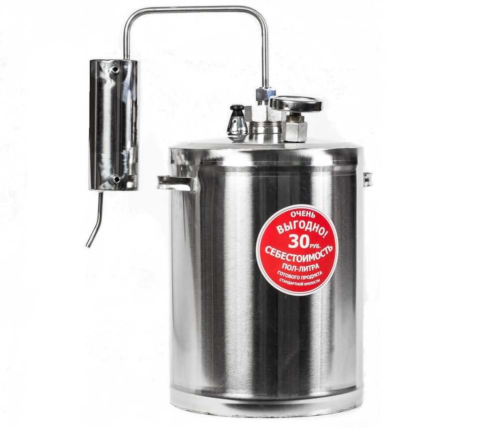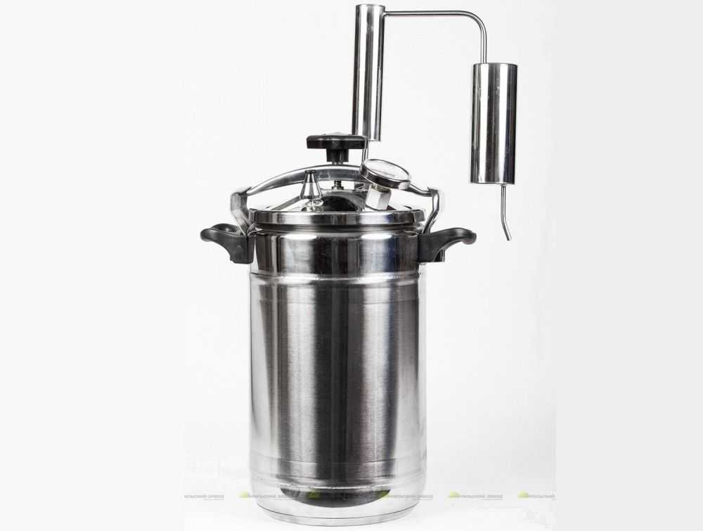 Обновленная модель, больше похожая на большую скороварку, а не на самогонный аппарат. Два в одном (автоклав и дистиллятор) — именно так называют этот агрегат в народе. Ориентировочные цены от завода: