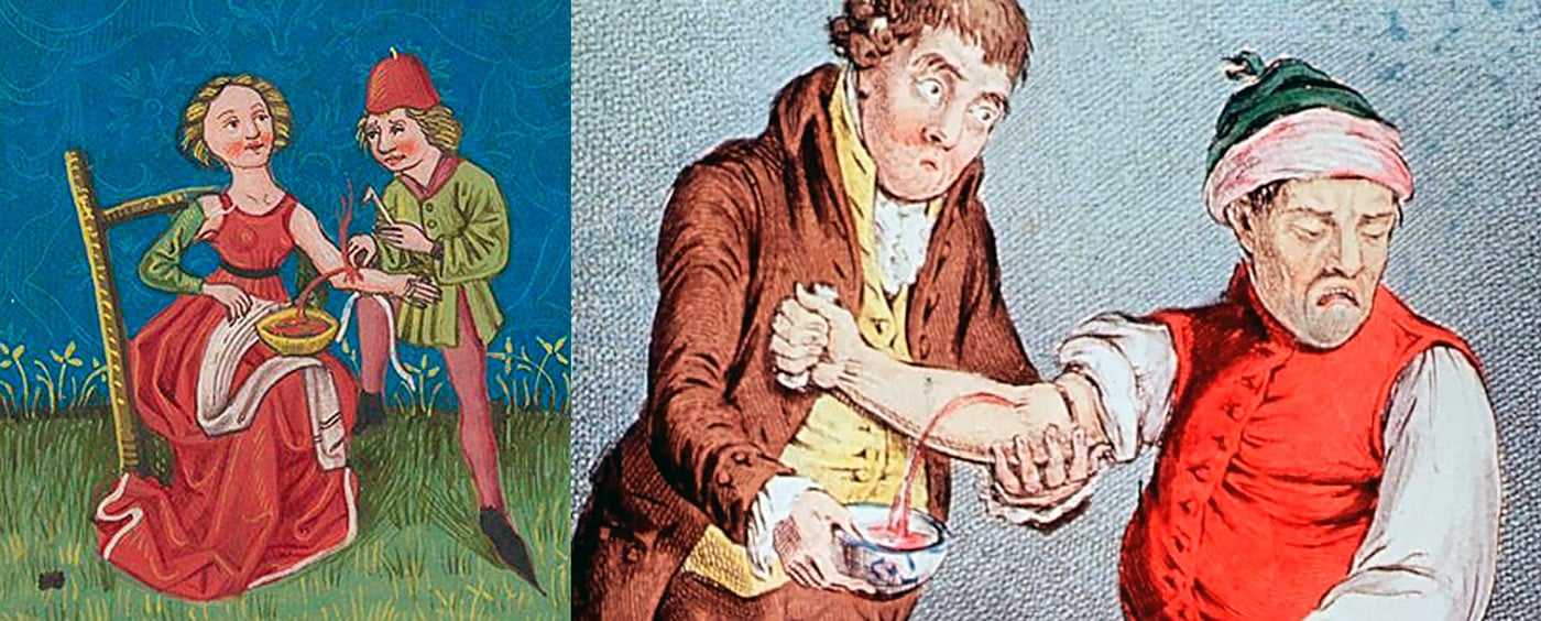 При европейском кровопускании делается надрез большой вены, поэтому происходит большая кровопотеря. Метод можно сравнить с современной сдачей крови из локтевой вены.