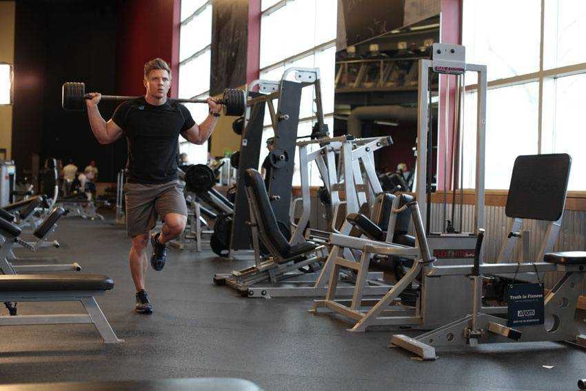 Ходьба с выпадами со штангой4 подхода по 25 повторений