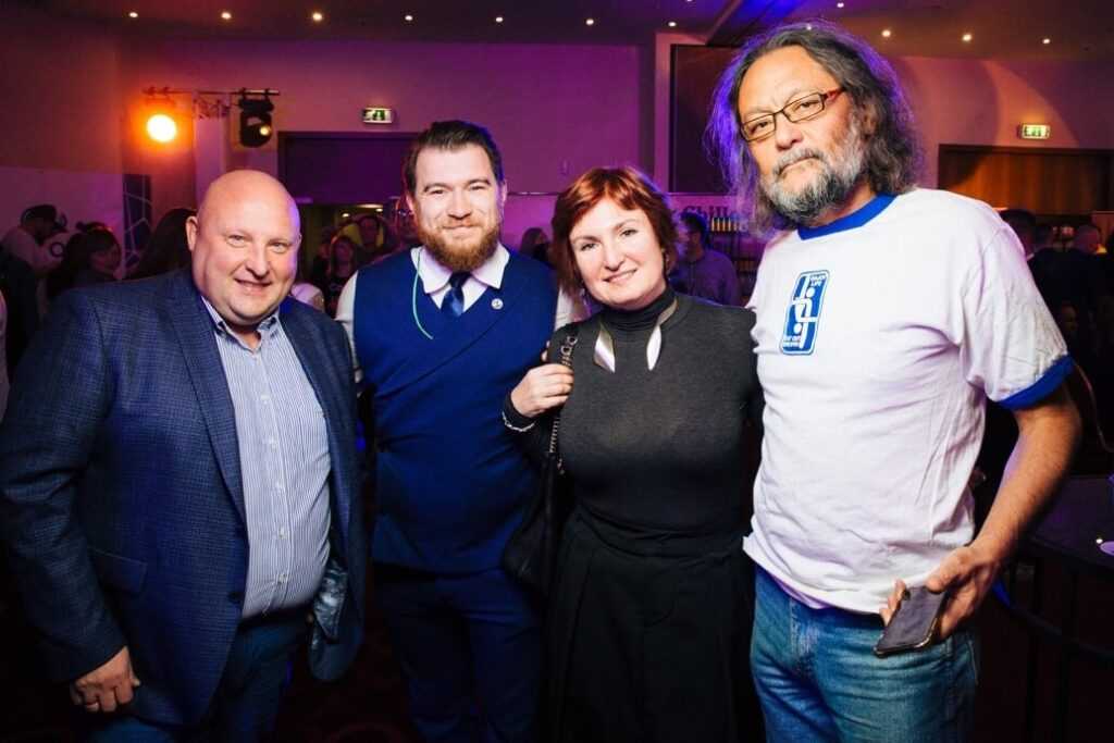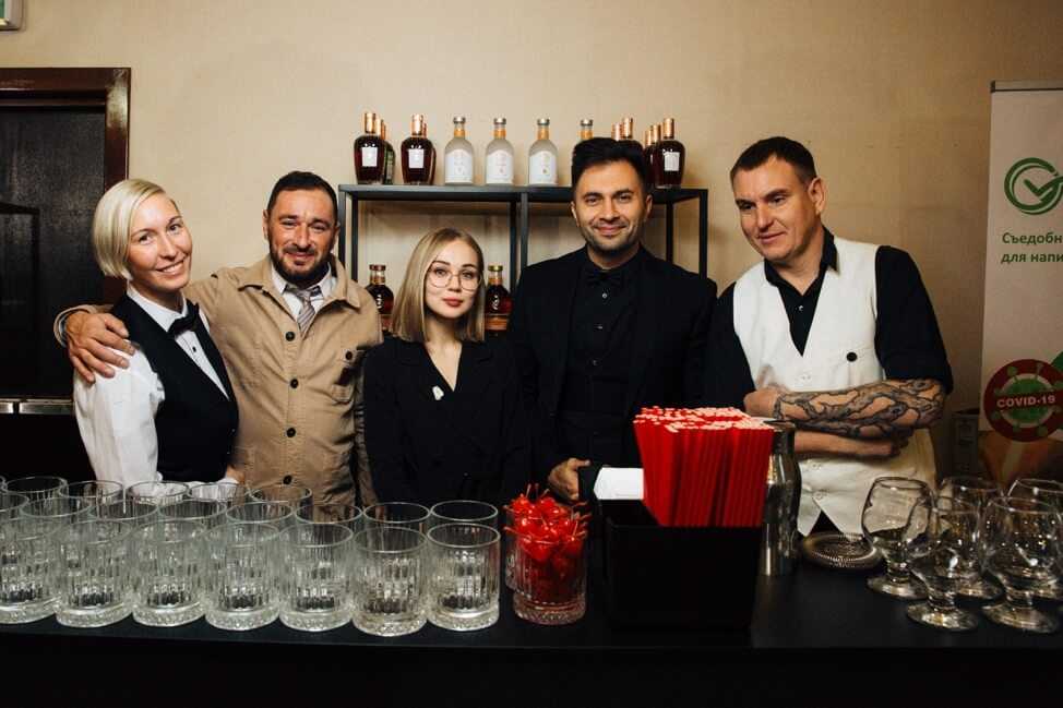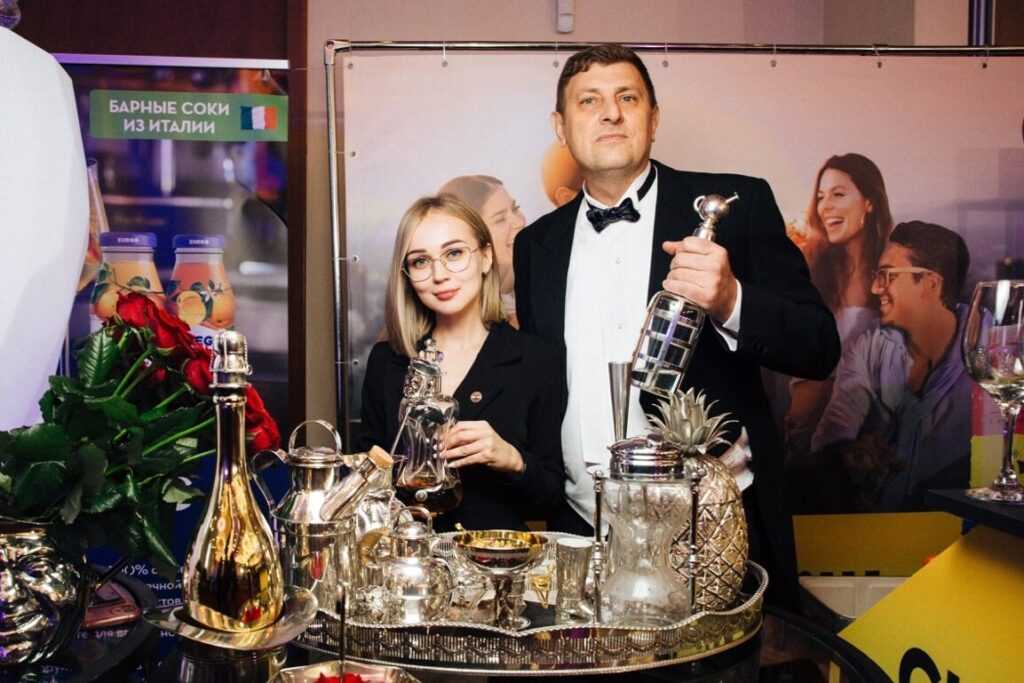 Семен Вяхирев (чемпион России 2021 в категории Flair Bartending) с супругой – фото слеваАлексей Свиридов (слева, чемпион России 2005 в категории Flair Bartending), Cветлана Ханыкова, Александр Родоман ( справа, 3 кратный чемпион мира в категории Flair & Classic) – фото справа