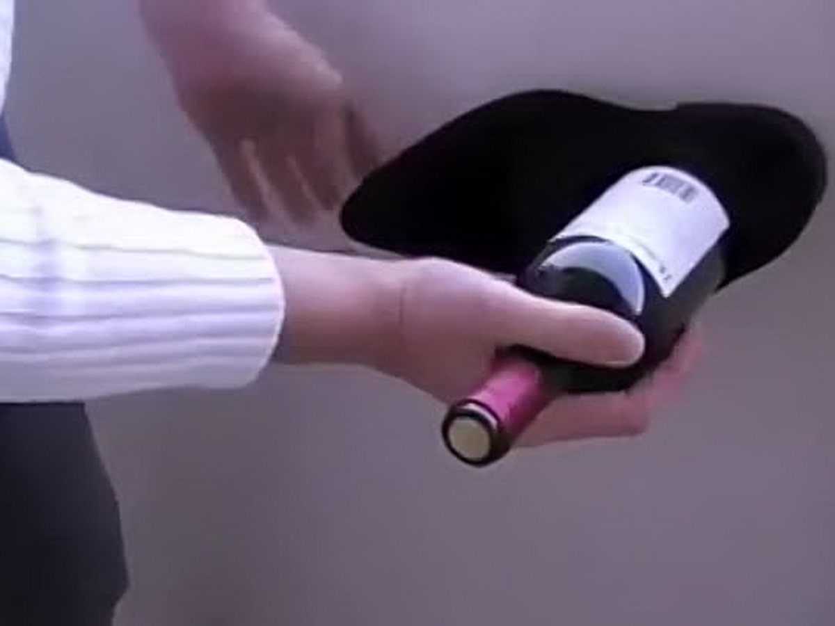 - закупоренное вино держат горизонтально, и ударяют донышком о вертикальную поверхность (стену с мягким покрытием, спинку стула и другую). Можно предварительно обернуть бутылку тканью или полотенцем, сделать подложку из книги, журнала, или же вставить вино в ботинок для амортизации удара подошвой.