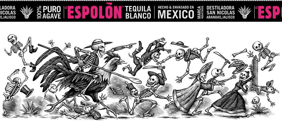 Этикетка каждого сорта текилы — это значимое событие из богатой мексиканской истории. Общим у этих всех сюжетов является то, что они посвящены реальному историческому персонажу — художнику карикатуристу Хосе Гуадалупе Посада, который изображал на своих карикатурах высшие классы в стиле праздника «Дня мертвых». То есть живых людей изображал в виде скелетов. Герои изображений на этикетках текилы Espolon — пара скелетов Гуадалупе и Розарита.