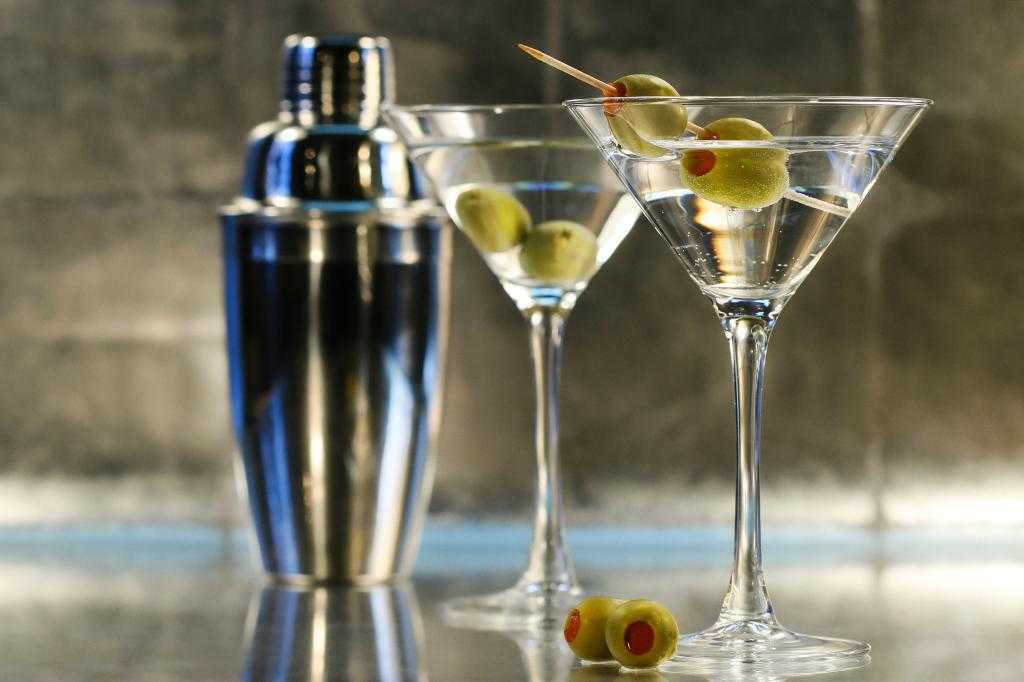 - Мартини. Это спиртное относится к разряду нестареющей классики. Для приготовления нужно всего два ингредиента – сухой вермут и Бифитер или другой сорт. Используйте шейкер, чтобы добиться равномерного смешивания компонентов. Классическая пропорция – 1 часть водки и 7 частей сухого вермута. Дополнить коктейль могут оливки и кусочек лимона.