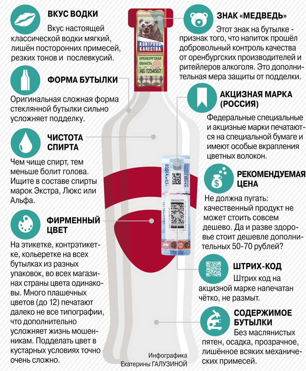 Этикетка — важный, но не самый надежный способ проверки. Если производители крепкого алкоголя крайне редко изменяют дизайн наклейки, то виноделы порой делают это каждый год. Тем не менее можно выделить ряд общих черт для этикеток на всех видах спиртных напитков: