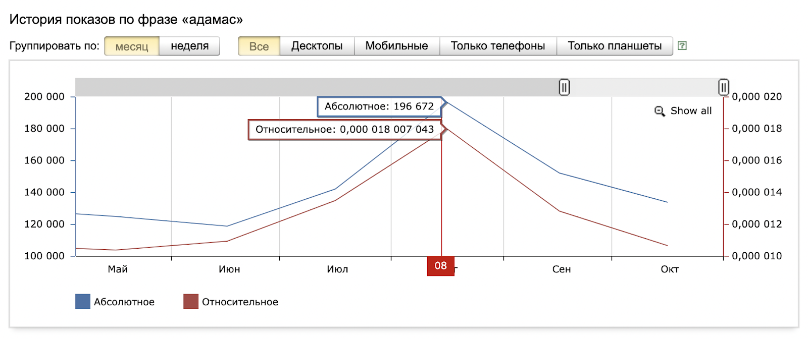 Согласно данным Wordstat, количество брендовых запросов также выросло в августе, что говорит о росте узнаваемости бренда.