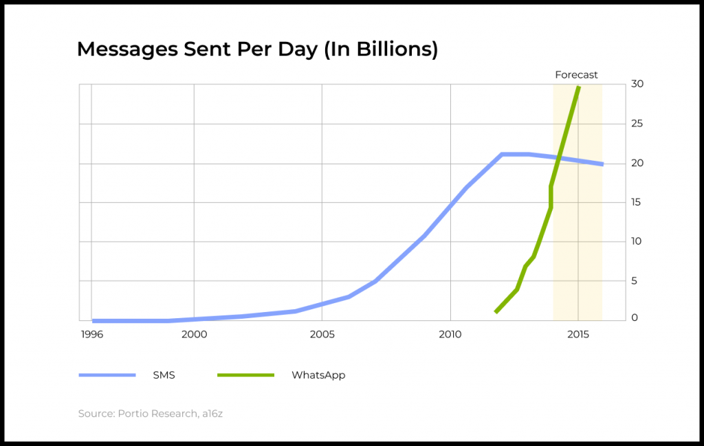 Мобильные мессенджеры создали значительную добавочную ценность, выиграли конкуренцию за «работу» у SMS и перевернули рынок. Постфактум можно сказать, что у меня была проблема и боль — мне надо было платить за каждое сообщение. Но до появления мессенджеров я не воспринимал это как боль. Ничего лучше SMS для решения моей задачи я не знал.