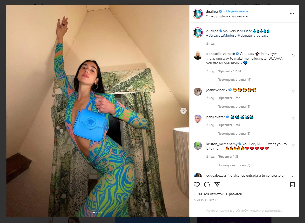 Дуа Липа часто одевается на мероприятия в платья и костюмы от Versace