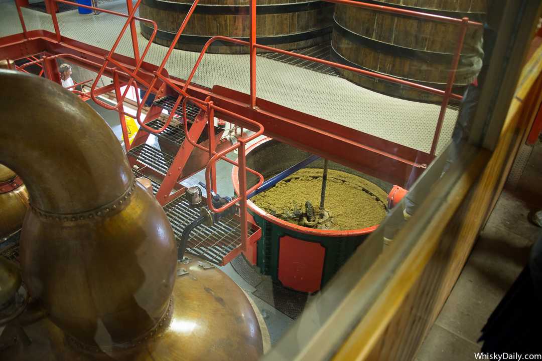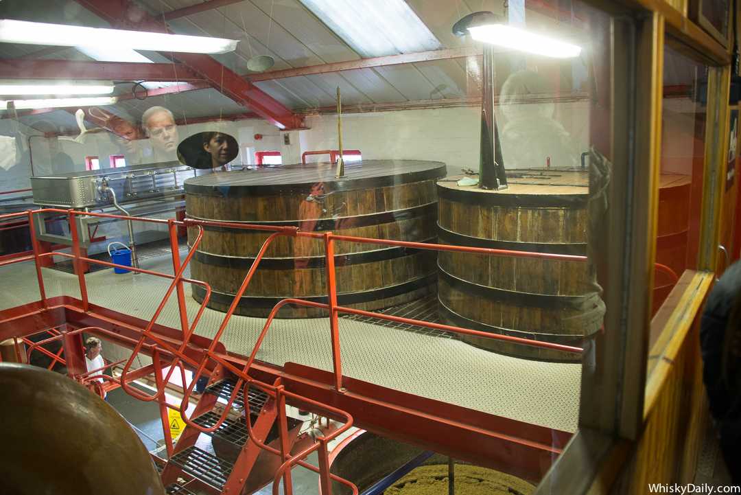 Сначала мы изучаем все из-за стекла, а девушка рассказывает нам о том, как производится виски.