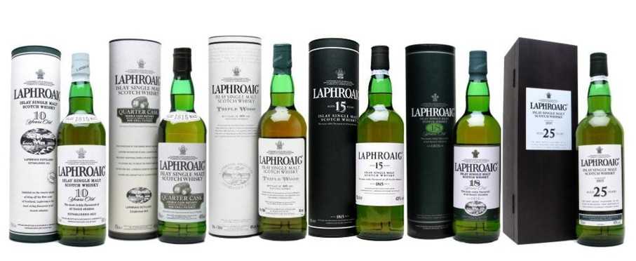 - Laphroaig Select Cask. Составлен из спиртов выдержанных в бочках из-под бурбона и хереса. Цвет виски янтарный с золотыми проблесками. Ароматический букет представлен оттенками красных фруктов, пепла и дыма. Во вкусе хорошо чувствуются тона дуба и торфа, приправленные фирменной сладостью. Послевкусие напитка богатое, наполненное цветочными и лаймовыми оттенками. Крепость – 40%.