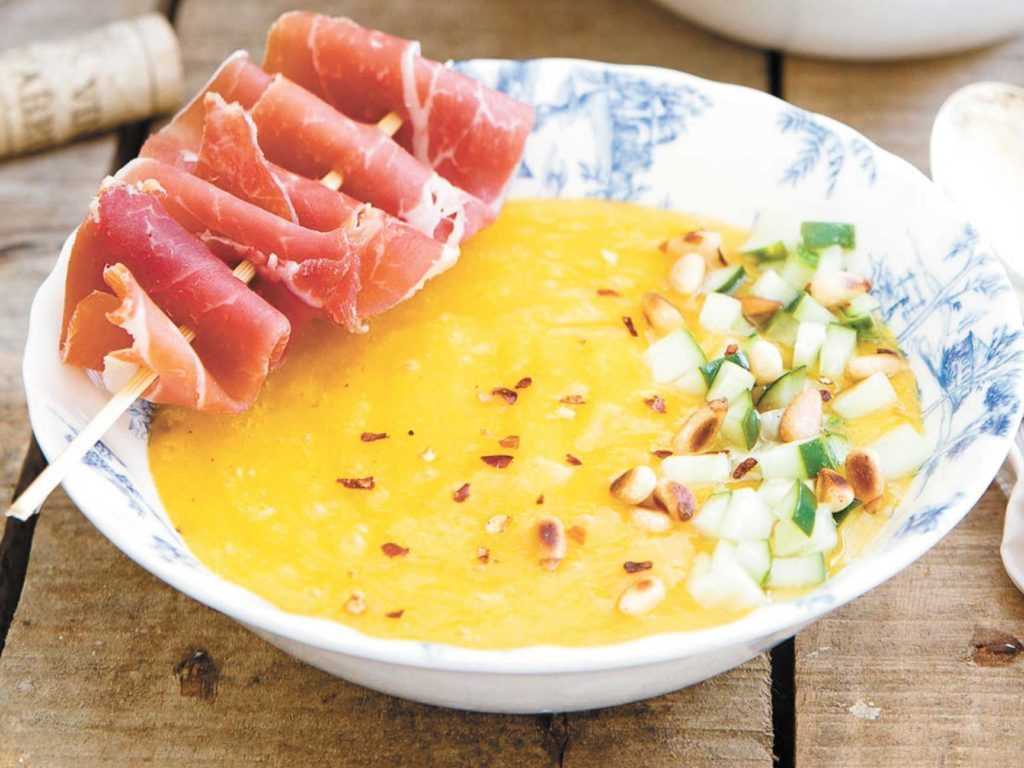 Прошутто с дыней сочетается не только в салате, но и в супах. Так для приготовления холодного супа из дыни потребуется подготовить следующие ингредиенты: