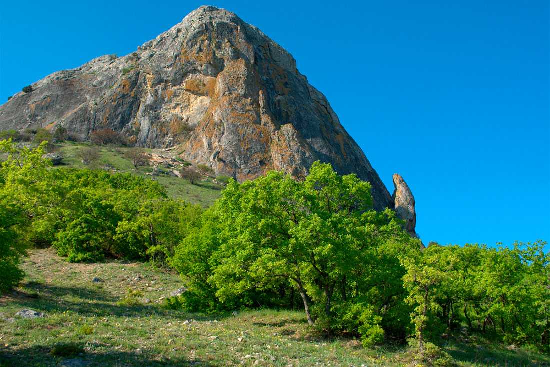 Гора Лягушка– яркая достопримечательность Судака, официальный символ города. Древний коралловый риф, очертаниями похожий на карабкающееся вверх земноводное, ежедневно «подправляется» ветром и солнцем. Из-за уникального сочетания огромных валунов и каменных глыб, поверхностных и глубоких расщелин и пещер, а также редких растений, прижившихся на каменистой поверхности, в 60-х годах возвышенность официально признана памятником природы и взята под охрану государством.