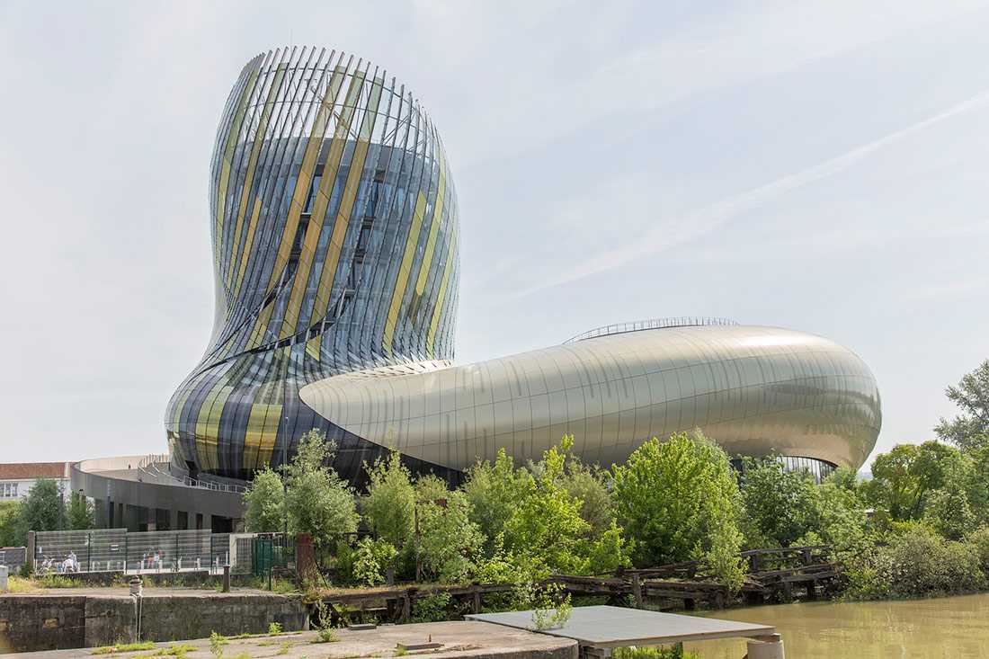Блестящее на солнце здание «Города вина» на берегу реки Гаронны напоминает своей формой декантер для вина и является потрясающим образцом современной архитектуры.