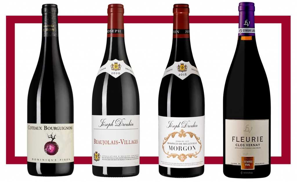 Слева направо: Domaines Dominique Piron Beaujolais-Villages 2019; Joseph Drouhin Beaujolais-Villages 2020; Joseph Drouhin Beaujolais Morgon Domaine des Hospices de Belleville 2017; Domaine Lafarge Vial Beaujolais Fleurie Clos Vernay 2016