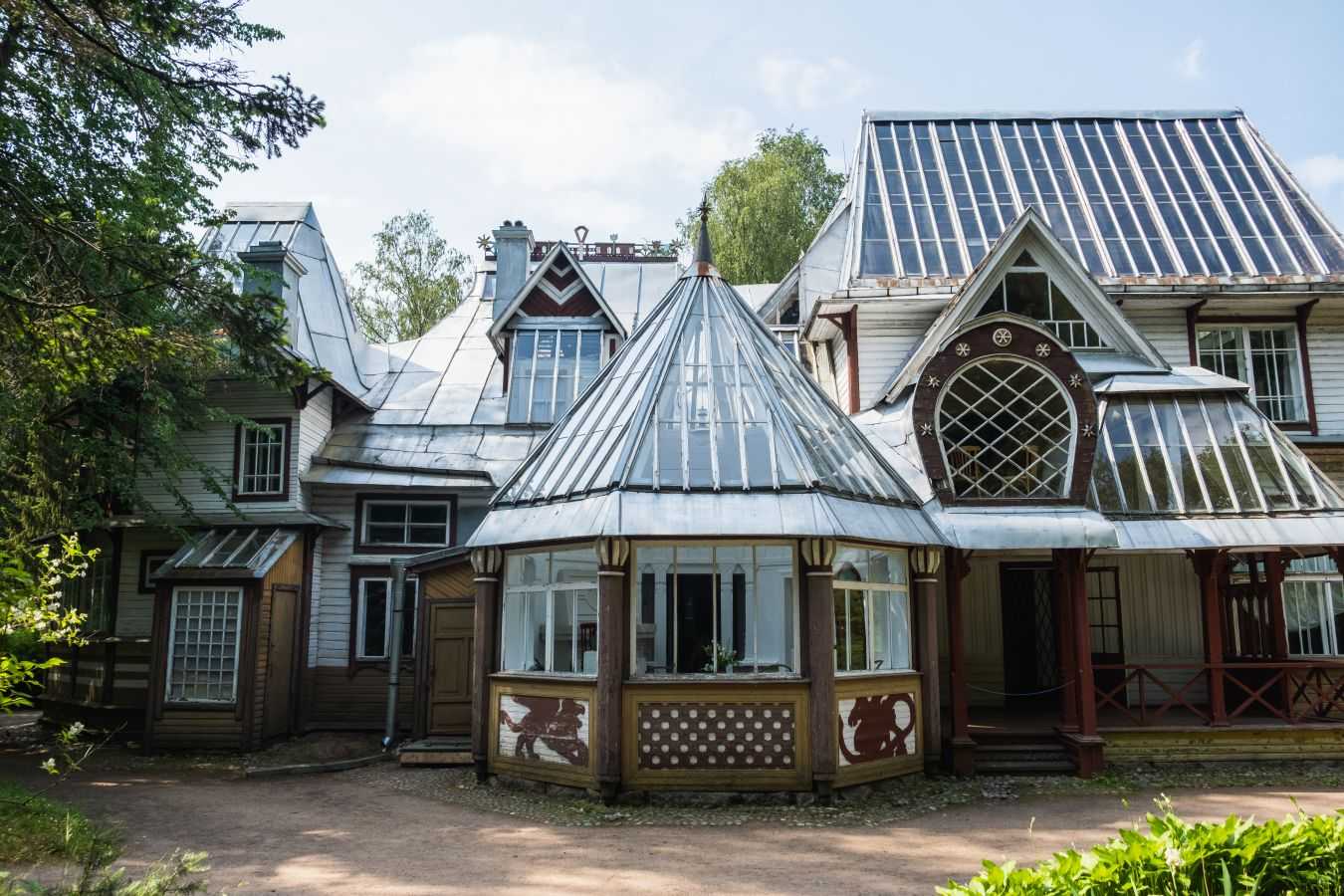 Но вернемся обратно, в начало XX века, чтобы проследить за становлением репинских «Пенат». Илья Ефимович был настоящим тружеником, и параллельно с занятиями живописью принимал активное участие в строительстве. Дом постепенно обрастал все новыми и новыми пристройками — причудливыми верандами, террасами и балконами. У Репина не было окончательного проекта усадьбы, новые помещения появлялись по мере необходимости, а все конструкции художник придумывал по ходу строительства. В результате дом стал напоминать сказочный терем.