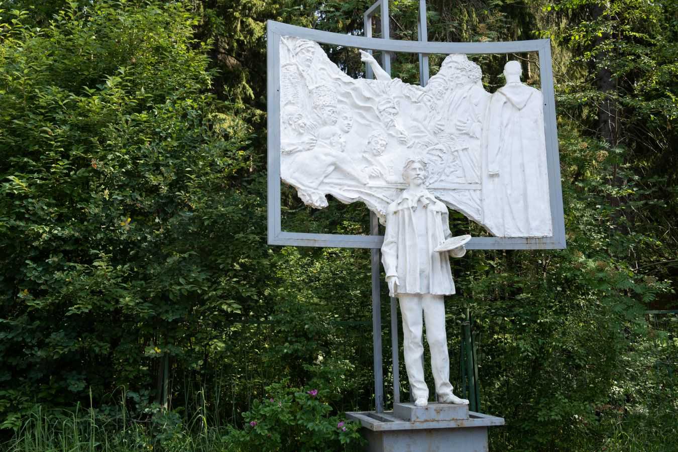 На границе своих владений гостей встречает сам Илья Ефимович Репин — в скульптурном обличье. Памятник работы Александра Бурганова появился неподалеку от входа в музей-усадьбу в 2014 году, в честь 170-летия художника. Скульптор изобразил Репина за работой над его знаменитой картиной «Запорожцы пишут письмо турецкому султану».