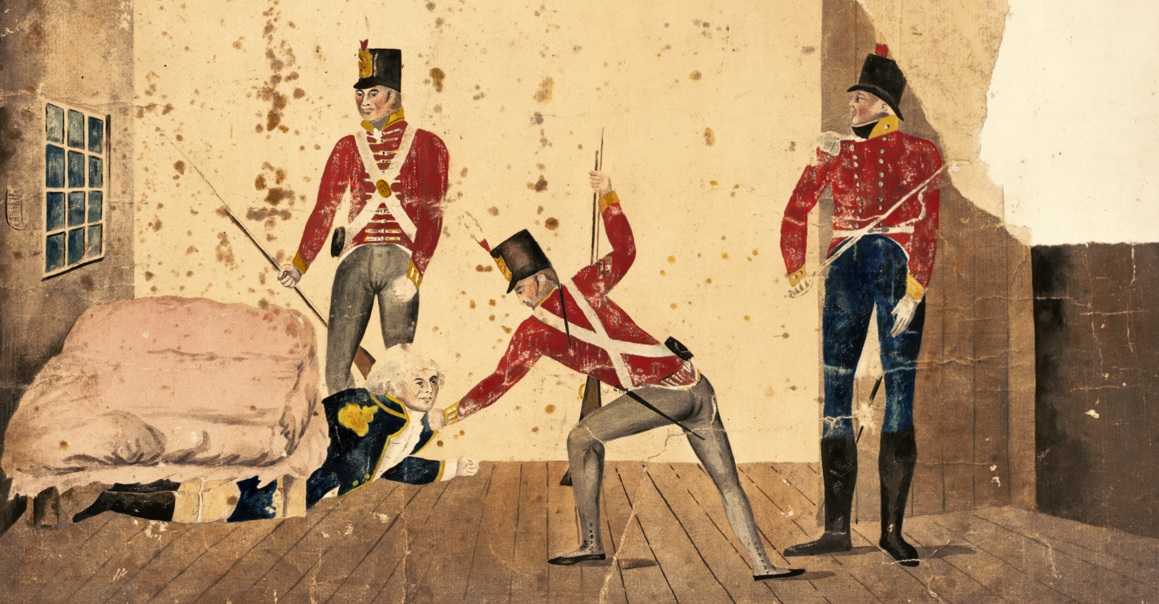 Ромовый бунт. Солдаты и спрятавшийся от их гнева губернатор.