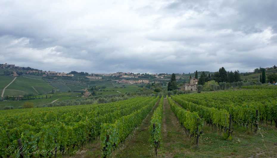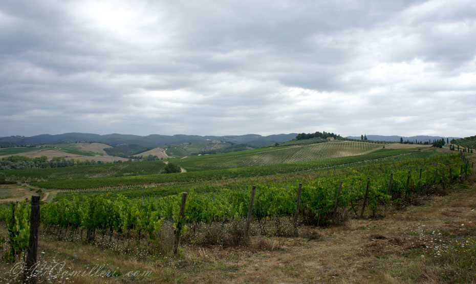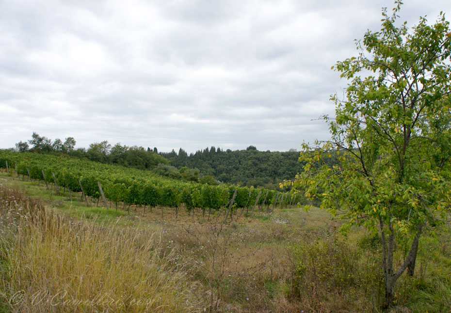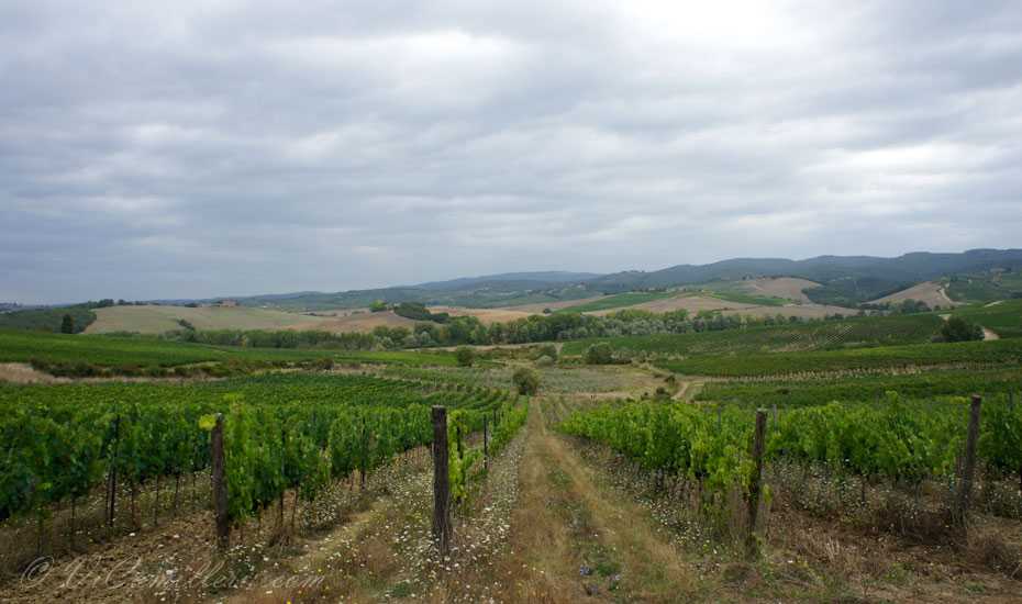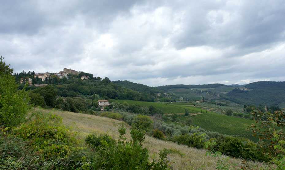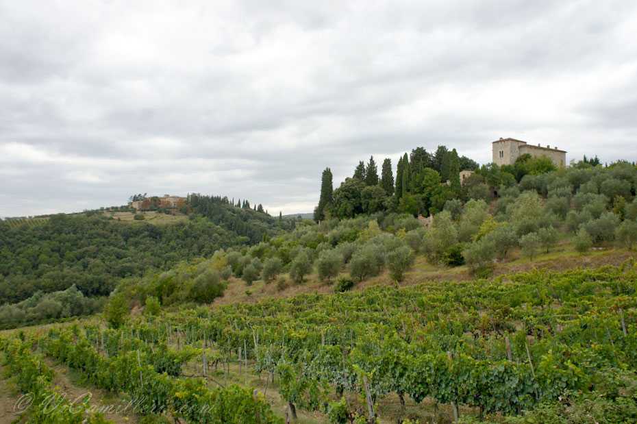 В знаменитую долину Кьянти (Chianti) в Италии нас угораздило приехать не в самую лучшую погоду. Никогда нельзя верить прогнозам… Это лето вообще не радует Италию жаркой и солнечной погодой, надо заметить. Поначалу мы расстроились, увидев небо в тучах. Но, постепенно нерезкие пейзажи Тосканы, размытые высокой влажностью воздуха и периодически начинающимся дождем, нас просто очаровали.