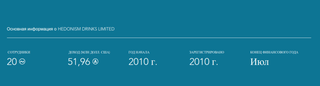 Из него следует, что до 2014 года бизнес был в убытке (£810 тыс. за 2014). За 2015/16 финансовый год Hedonism Drinks, Ltd. уже поднял £352 тысячи, а в 2017 дал £2 млн чистой прибыли.
