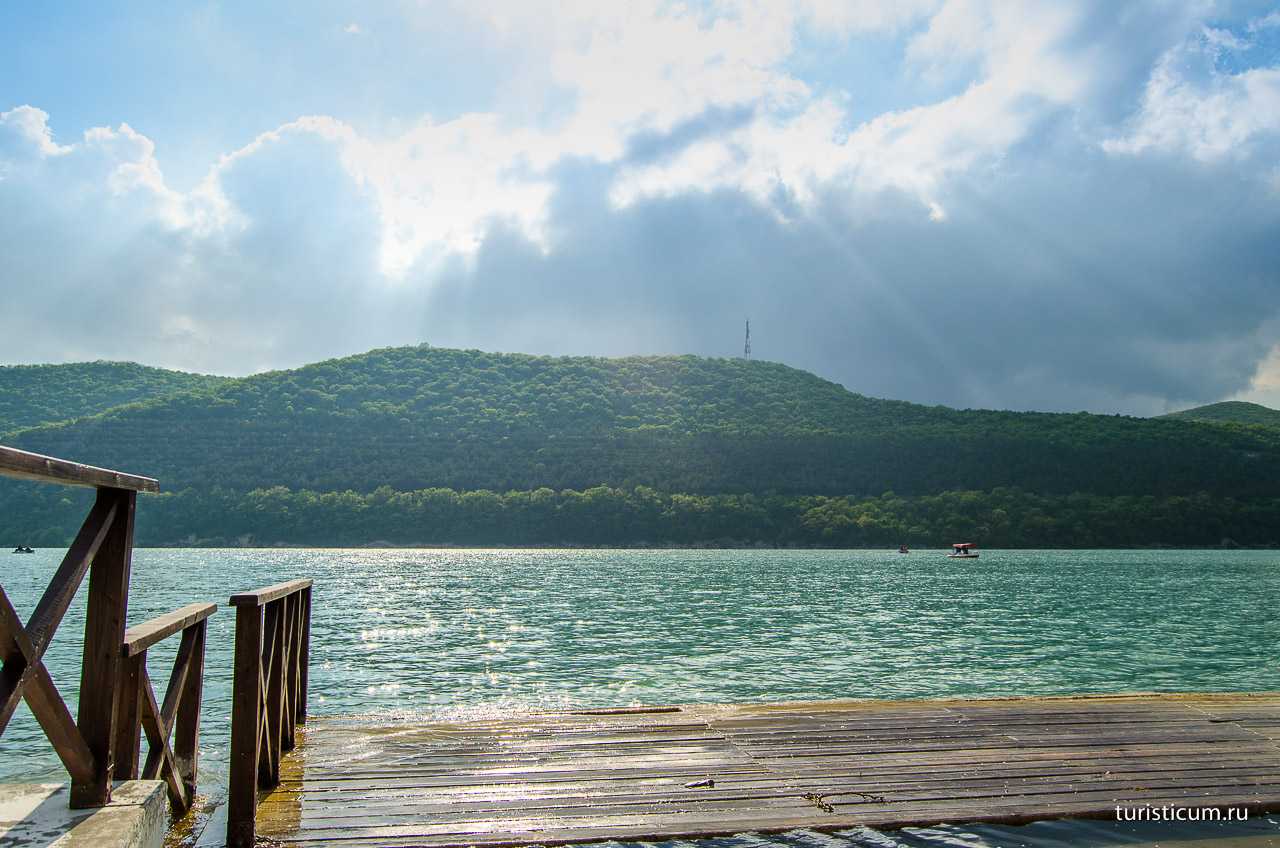 Озеро Абрау — это самый крупный пресноводный водоем Краснодарского края. Он привлекает красивым изумрудным цветом воды, из-за растворенного в нем известняка и мергеля. Озеро окружают живописные горы, покрытые лесами.