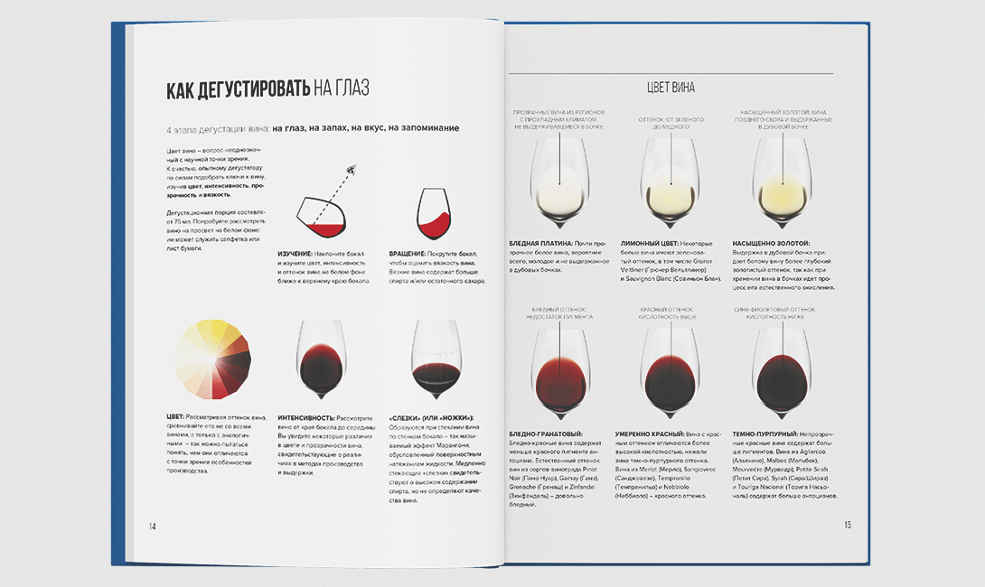 Для начала достаточно научиться подмечать все эти детали. Хочешь подробнее знать, что они могут сказать о вине, обратись к практическому пособию Wine Folly. Вся винная наука представлена в нем в виде понятной и простой инфографики.