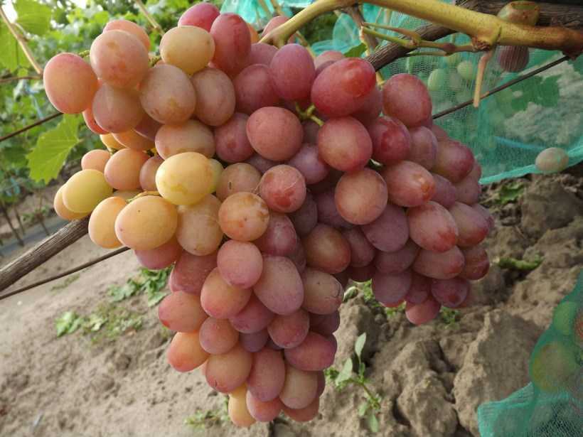«Кишмиш лучистый» – раннеспелый сорт розово – фиолетовой окраски. Мякоть сочная с нотками муската, ягоды хорошо переносят транспортировку.