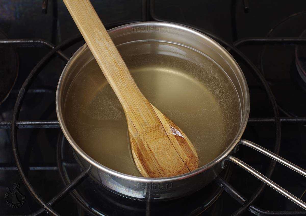 Для этого залейте сахар водой и поставьте на маленький огонь. Сироп медленно помешивайте ложкой до полного растворения сахара, снимите с плиты и остудите до комнатной температуры.