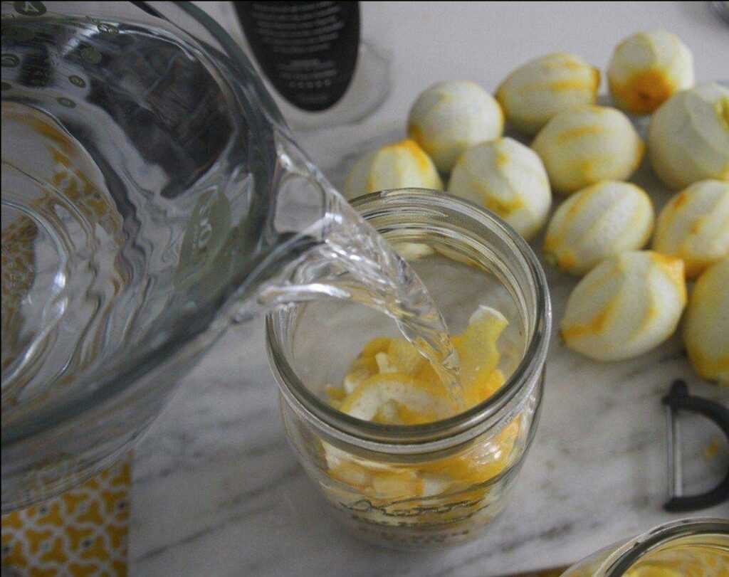 Готовая цедра не должна высохнуть. Сразу поместите её в стеклянную банку и залейте самогоном так, чтобы спирт полностью покрывал цедру.
