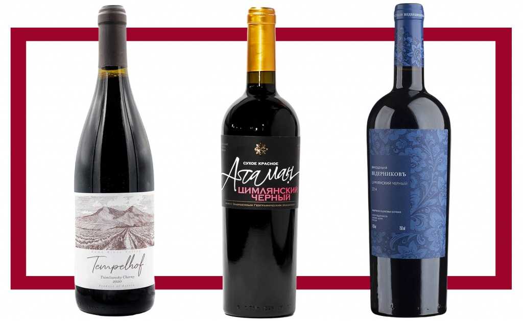 Слева направо: Tempelhof Tsimliansky Cherny 2020 Ставропольский край; Вилла Звезда Гранд Резерв Атаман Цимлянский Черный Долина Дона; Ведерниковъ Цимлянский Черный Выдержанное Долина Дона