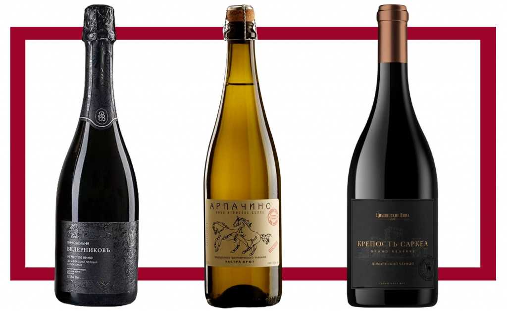 Слева направо: Ведерниковъ Цимлянский Черный Брют Блан 2017 Долина Дона; Арпачино Цимлянский Черный Экстра Брют Долина Дона; Крепость Саркел Гранд Резерв Цимлянский Черный 2018 Долина Дона