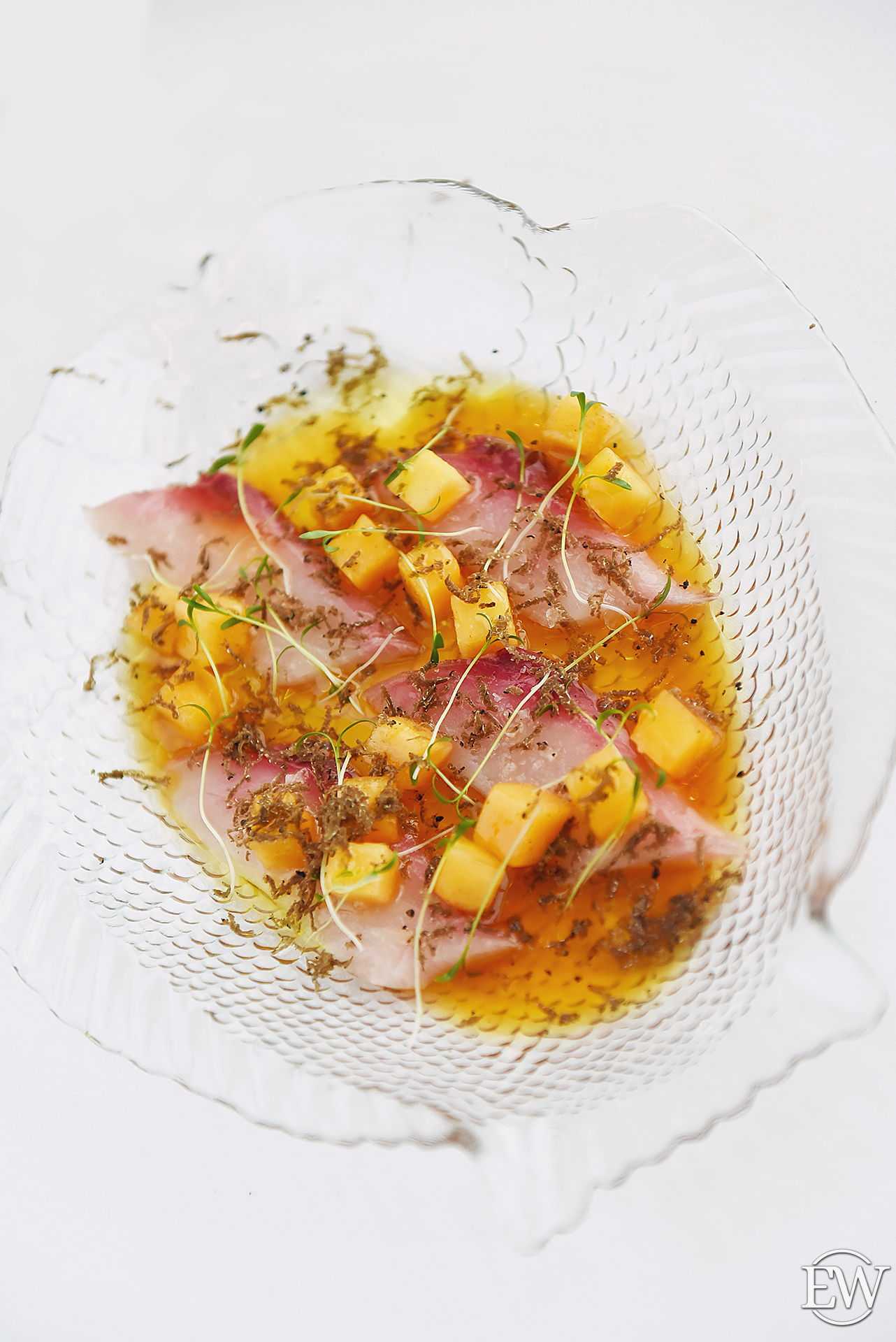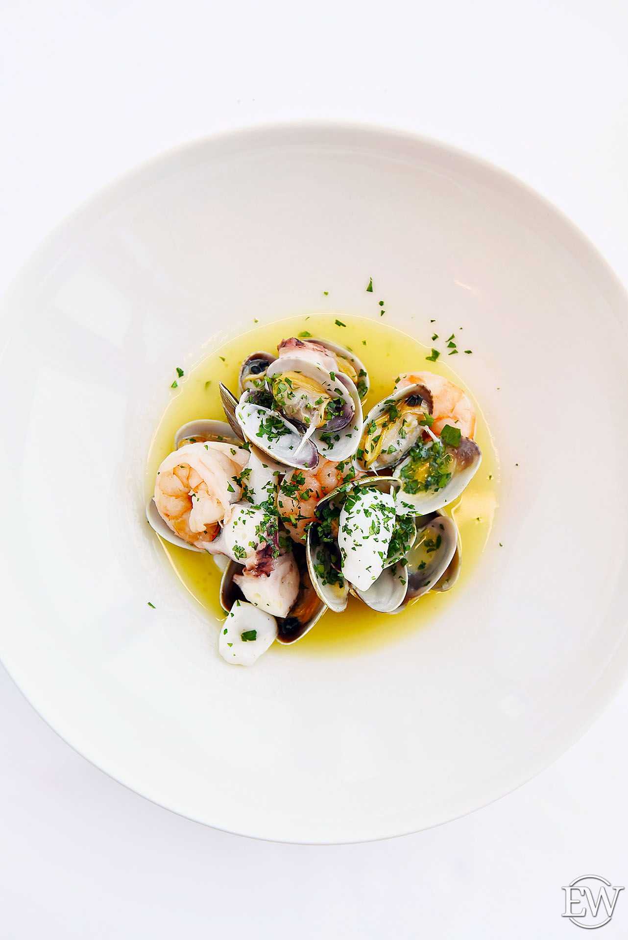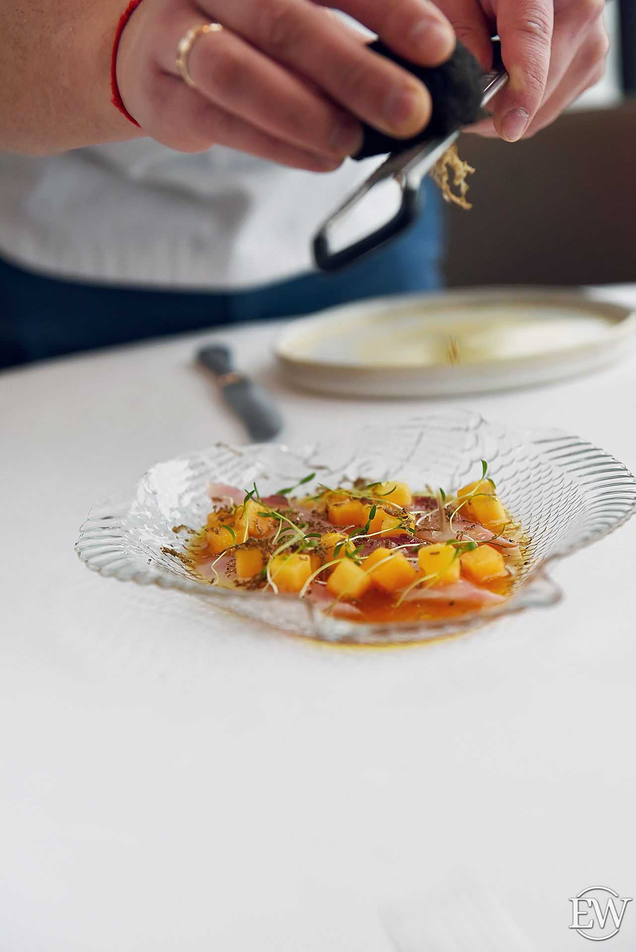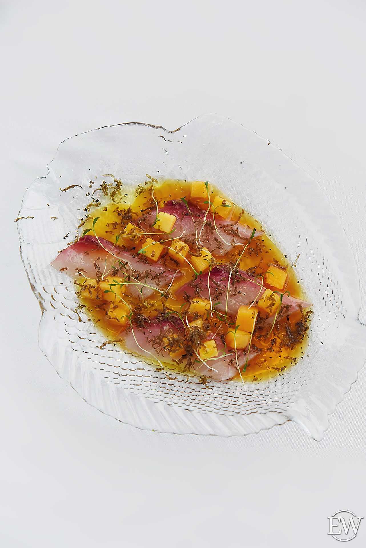 Я советую попробовать у нас классическое крудо из японской рыбы шимаджи в паре со швейцарским шардоне от Gantenbein. При выборе вина к рыбе и морепродуктам нужно исходить из текстуры и плотности продукта. Как пример: морской язык и морской черт кардинально разные по вкусовым ощущениям, и вина к ним нужно подбирать разные. К языку неплохо подойдет не дубовое и не очень кислотное вино (лугана, не резервная). А морской черт хорошо выступит со структурной Бургундией (Шассань, David Moret Abbaye de Morgeot). Важен и метод приготовления, так как он в значительной степени определяет вкусовые ощущения».