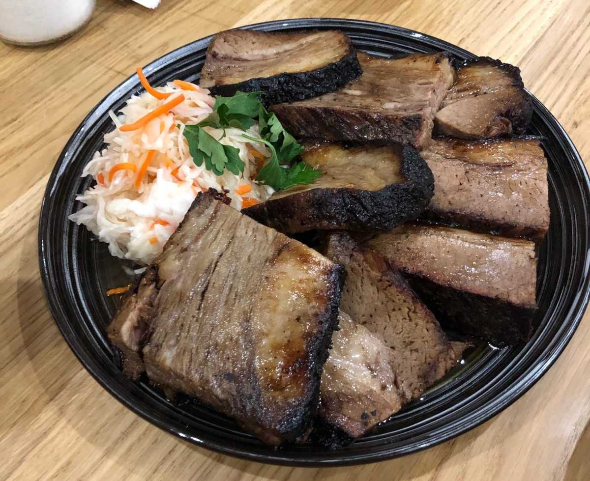 – Мы стараемся кормить гостей русской кухней, с небольшими отступлениями. И брискет – блюдо-отступление, наверное. Это, скорее, американское блюдо. Это говядина, грудной отруб. Мясо готовится 14 часов при температуре 120-130 градусов, томится в закрытом виде. Добавляется щепа. Мясо заранее маринуется в специях, какие именно специи мы используем – профессиональный секрет.