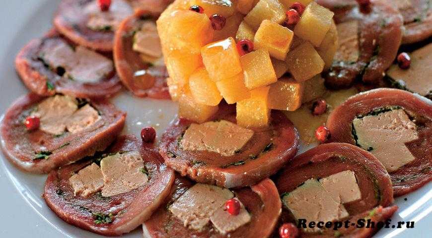 Карпаччо из утки с фуа-гра и грушами
