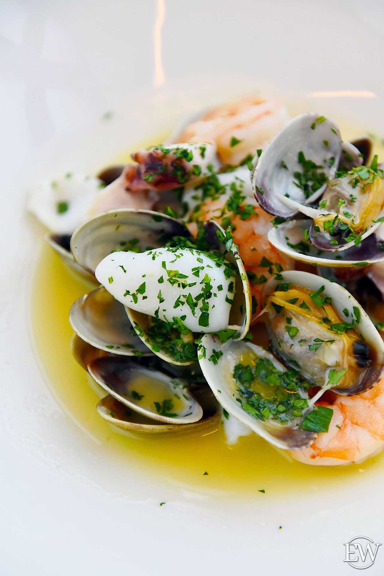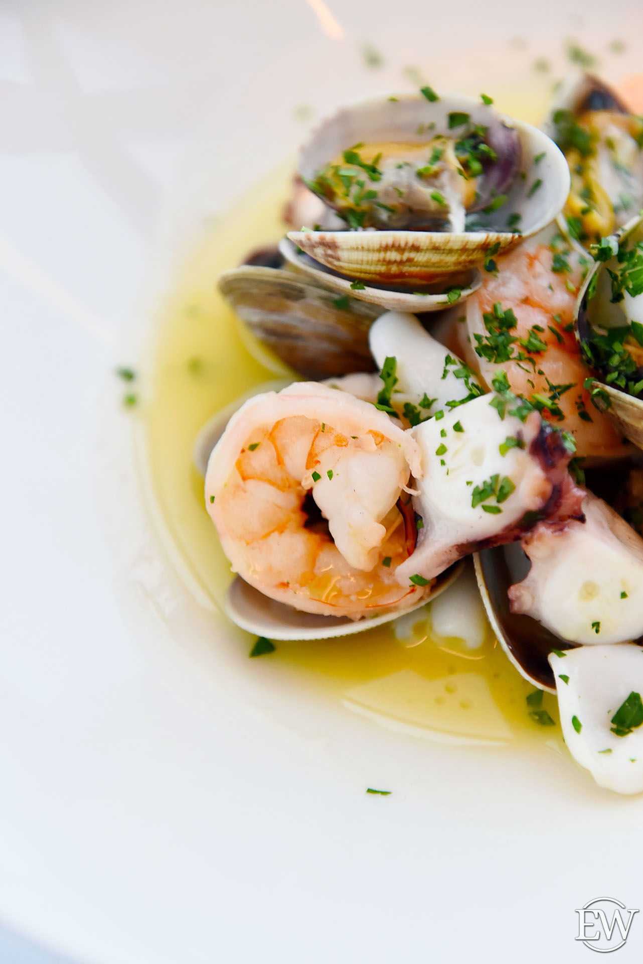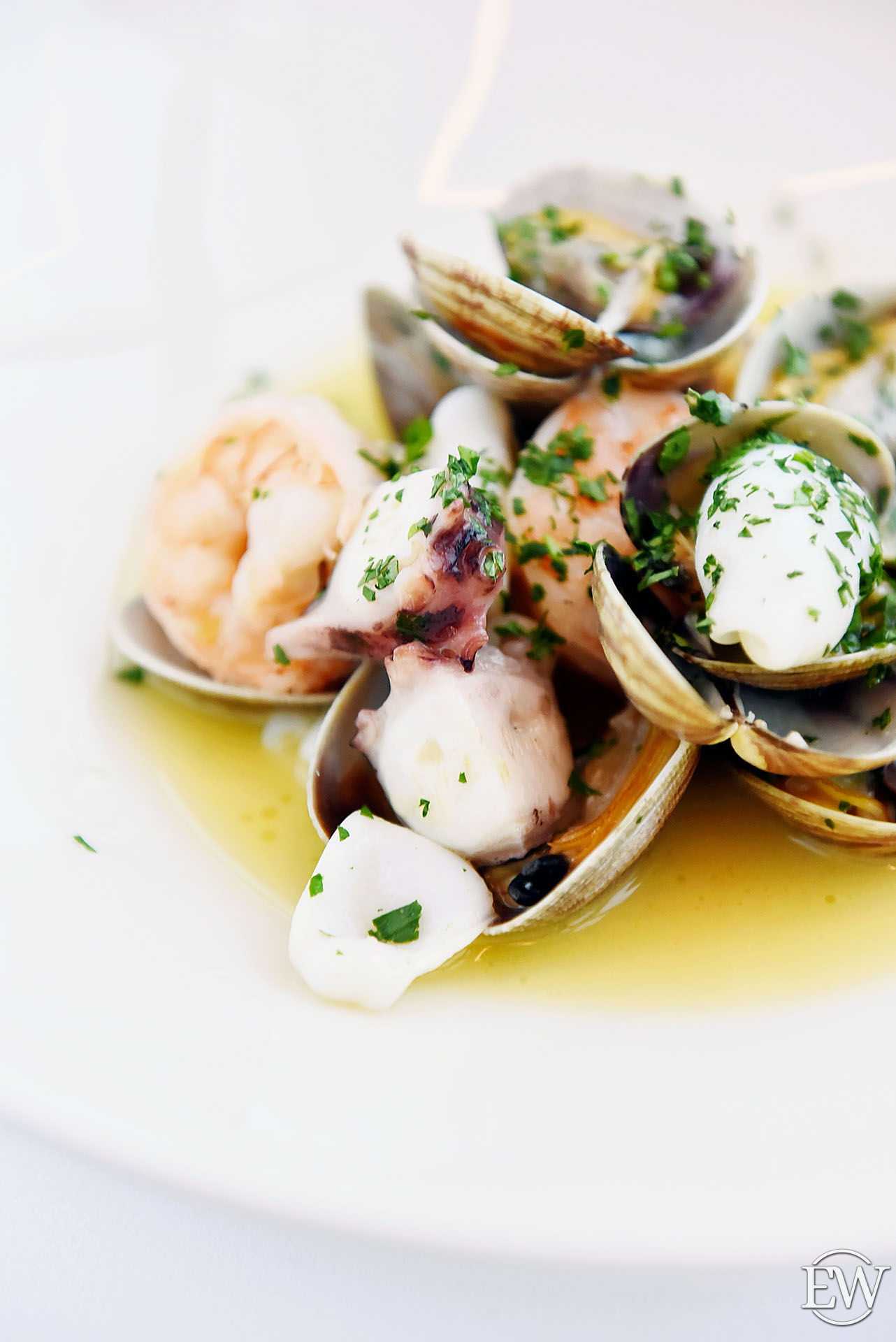 Соте из морепродуктов в соусе белое вино (1080 р.) – беспроигрышный вариант цена-качество, что обуславливает и объемная порция, и качественное содержимое. Это и кальмары, и осьминог, тигровые креветки и вонголе – каждый любитель морепродуктов найдет здесь что-то для себя. Все деликатесы приготовлены так, чтобы оставить «нетронутым» оригинальный вкус каждого.