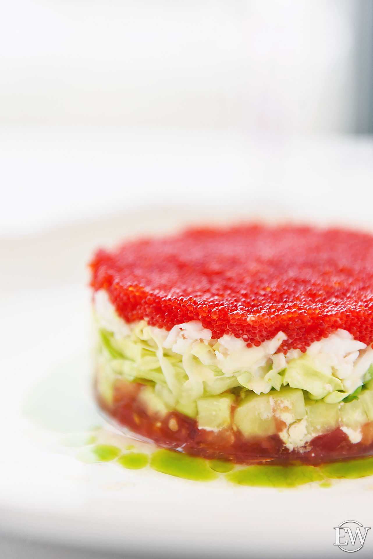 Салат с крабом, авокадо, огурцами и томатами (1450 р.) — внегласно зовётся как и сам ресторан — «Сахалин». Классика «по-новому» порадует глаз своим праздничным видом и узнаваемым вкусом.