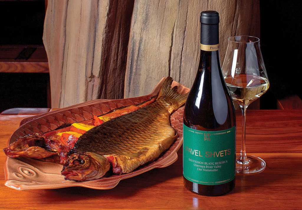 Pavel Shvets Sauvignon Blanc Reserva 2019 & копченый карп. Фото: Роман Суслов